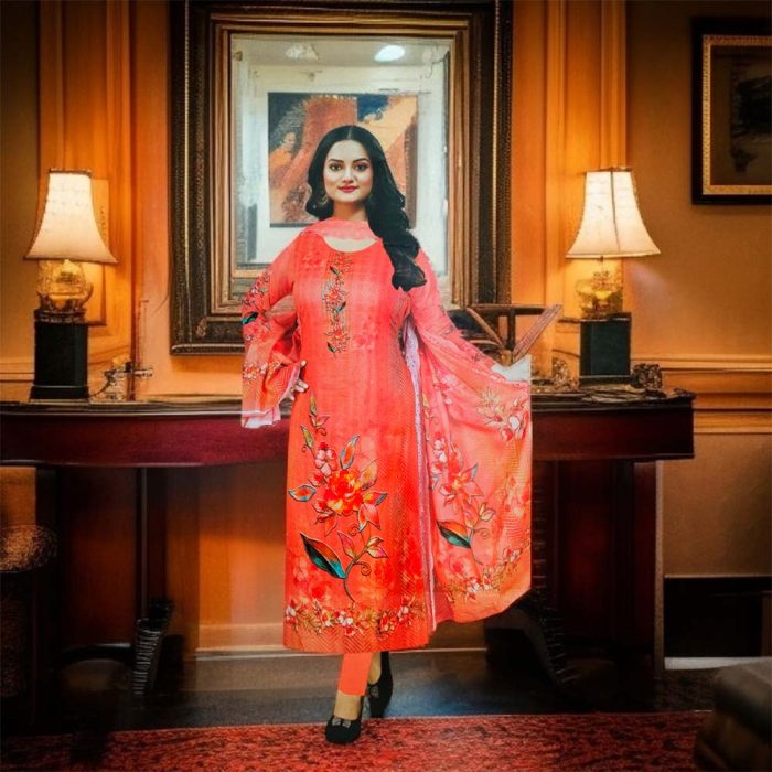 Be the first to review “Vivek Premium Soft Cotton Digital Print Arri Work Ladies Three Pieces” Cancel reply